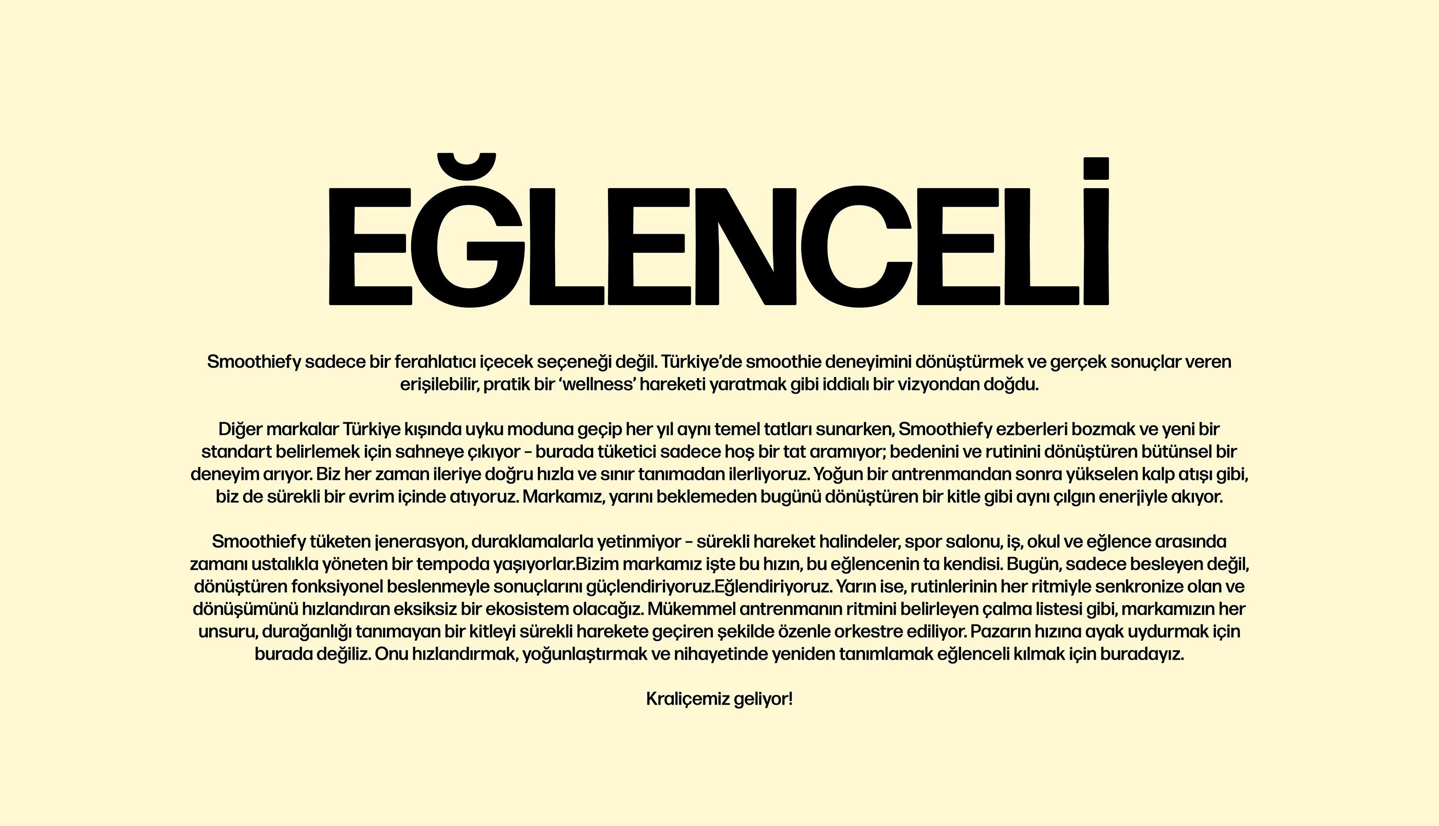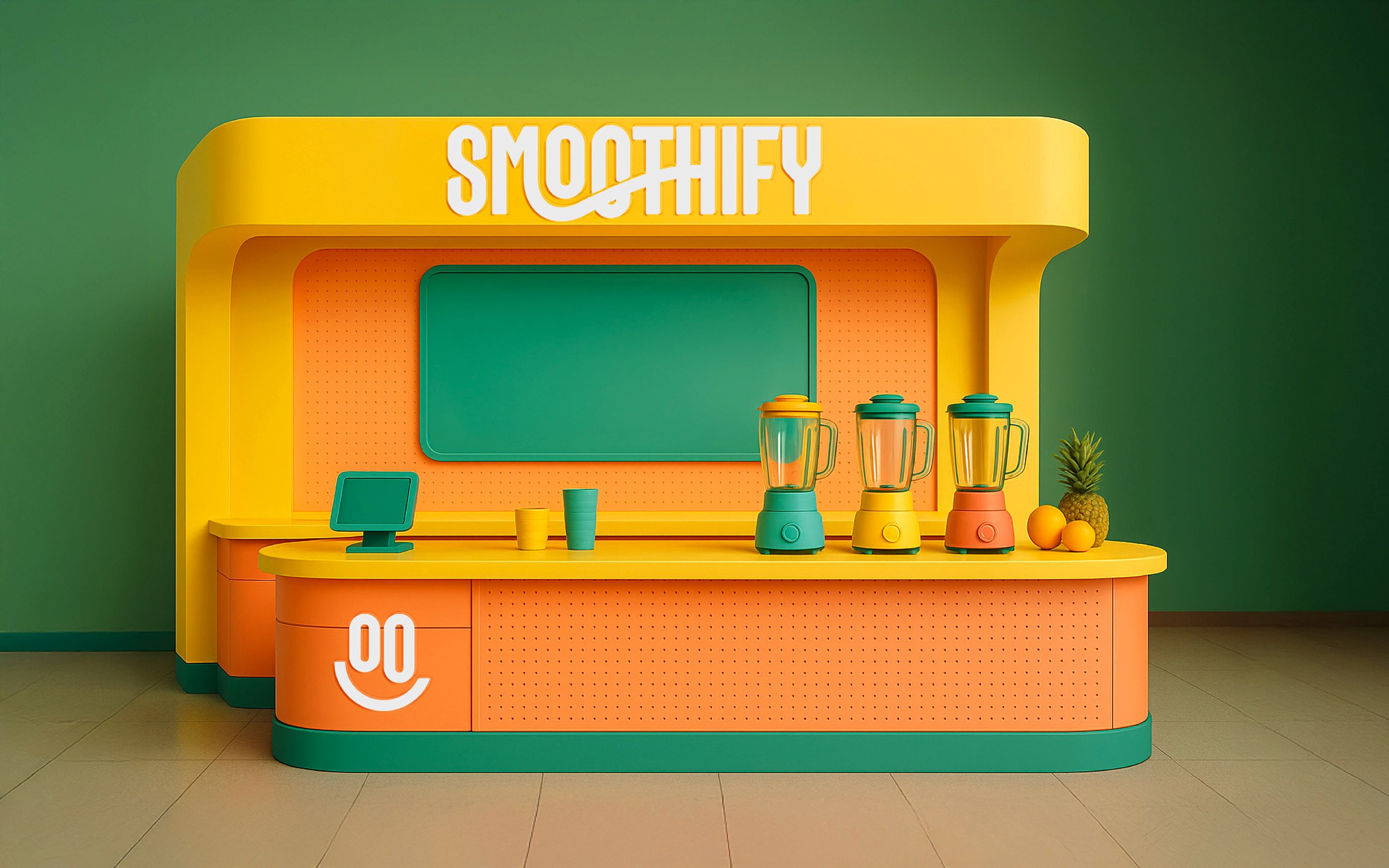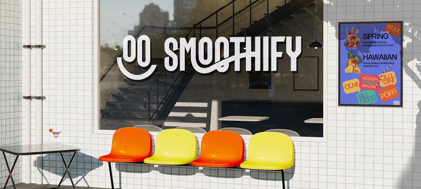 Smoothify, smoothie deneyimini “hızlı, enerjik ve eğlenceli” bir marka dünyasıyla sunan; kiosk odaklı, ölçeklenebilir bir içecek konsepti olarak kurgulandı. Hedef; tek bakışta tanınan, genç ve dinamik duran bir kimlik üretmek ve franchise büyümesini kolaylaştıracak net bir sistem oluşturmaktı.