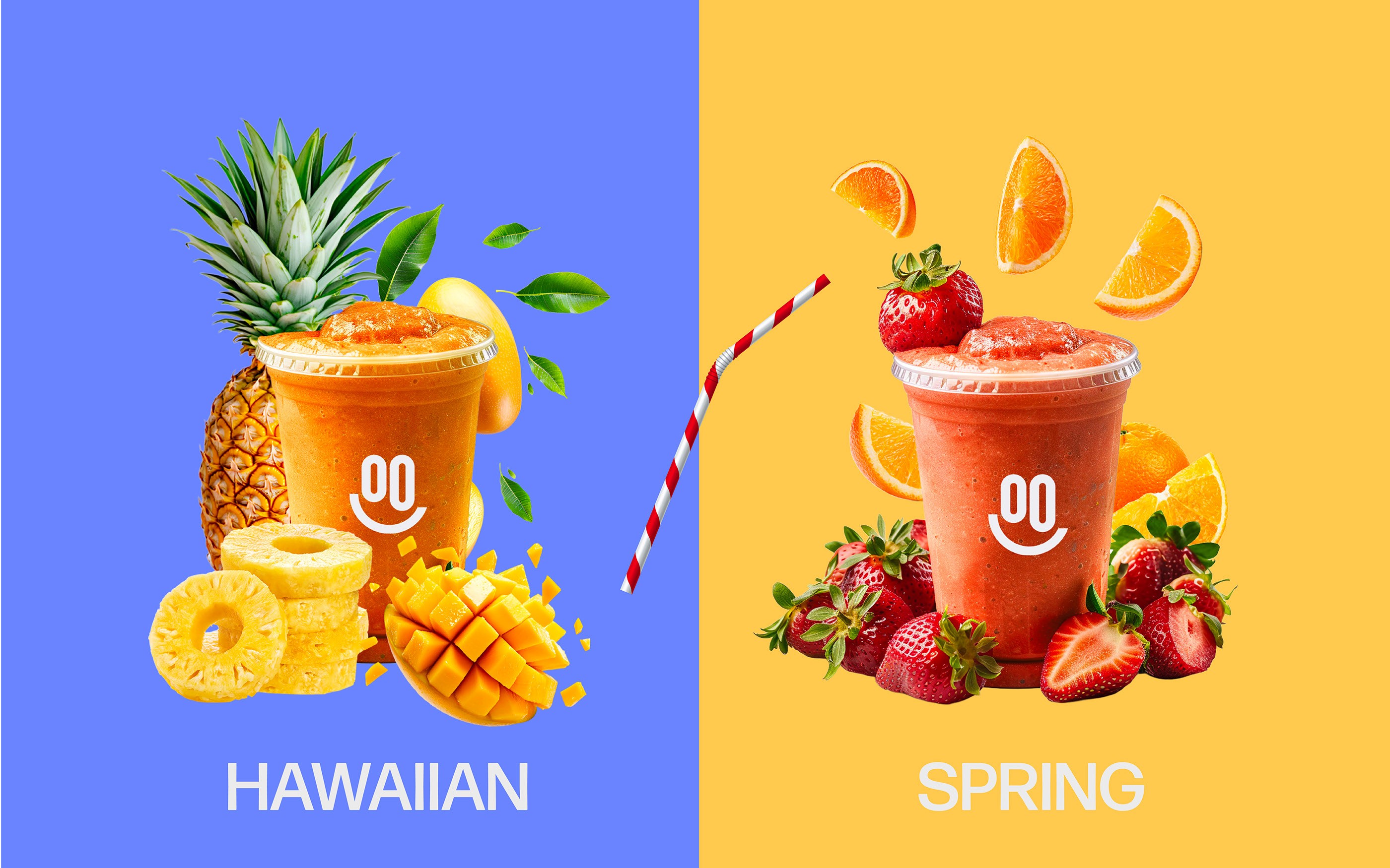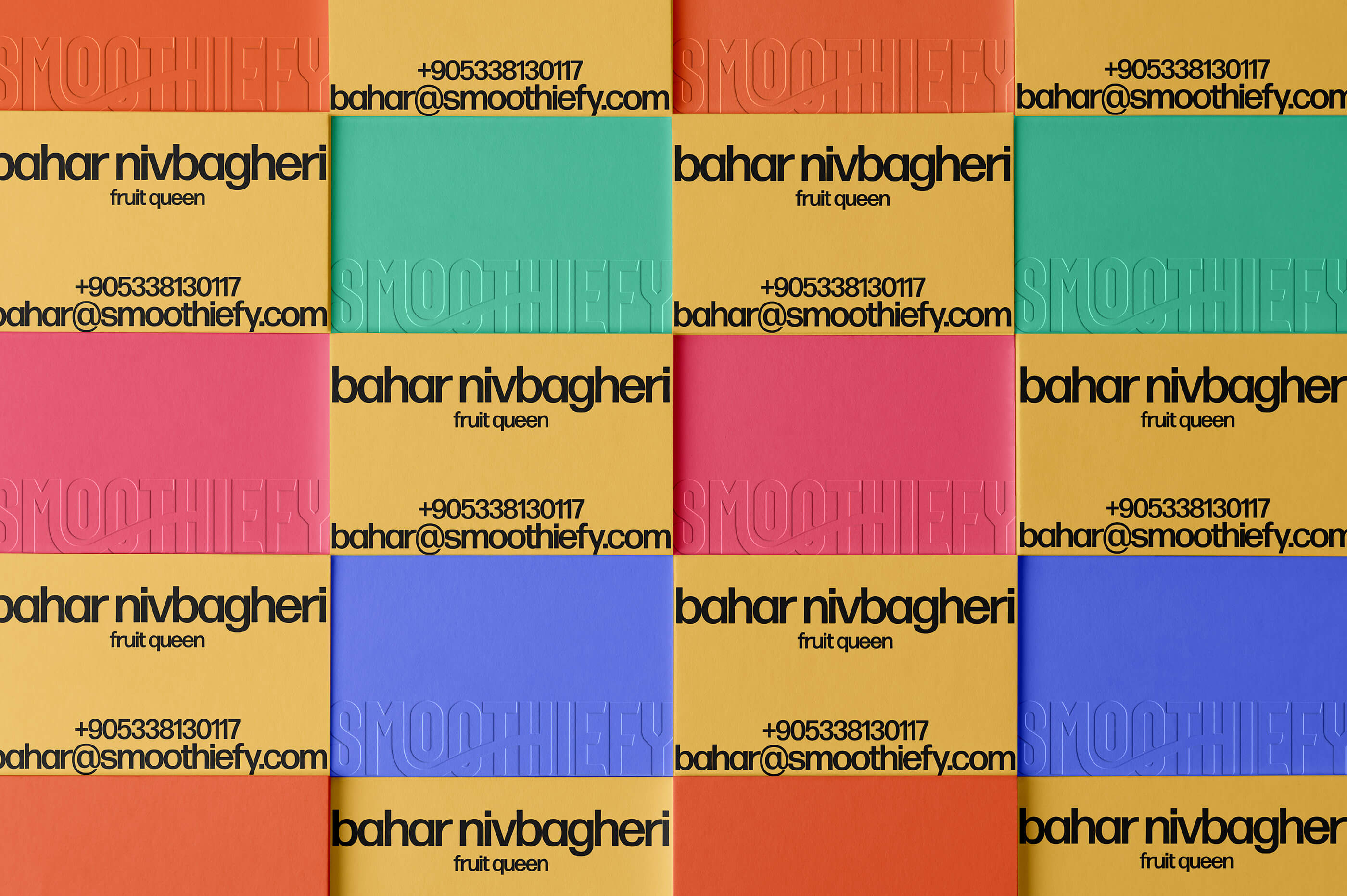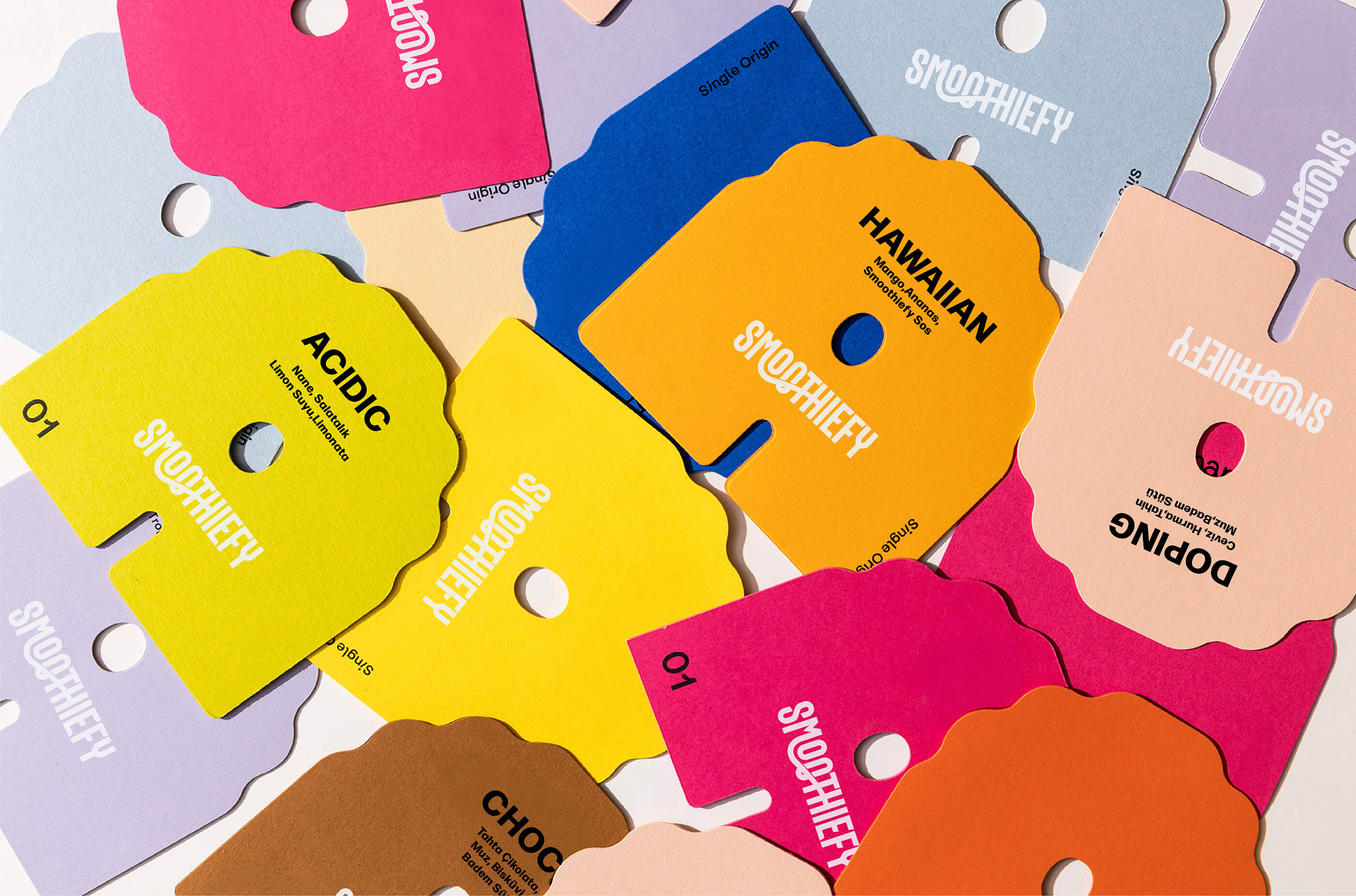 Marka dili; yüksek kontrastlı canlı renk paleti, güçlü bir logotype, smile ikon dili ve modüler grafik öğeler üzerine kuruldu. Bu sistem; kiosk tasarımı, bardak/packaging, menü ve sosyal medya gibi tüm temas noktalarında aynı enerjiyi koruyarak Smoothify’ı her lokasyonda tutarlı, akılda kalan ve hızlı uygulanabilir bir görsel imzaya dönüştürdü.